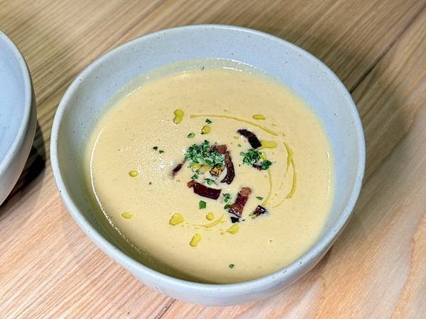 使用新鮮玉米,經窯烤釋放出甜味後打成泥狀,非常濃郁且鮮美,