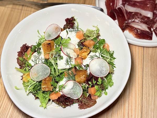 【布拉塔起司沙拉 生漬鮭魚 炭烤鳳梨】