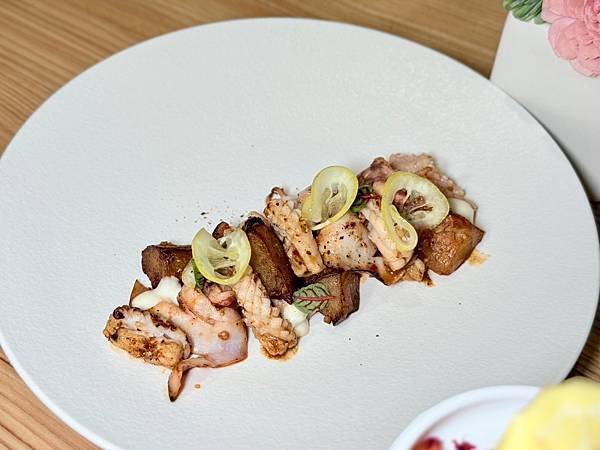 【伊比利豬老饕上蓋 炭烤海虎蝦 蔬菜醃漬醬】