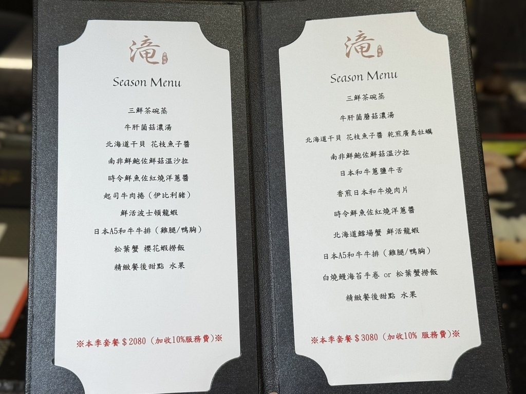 【滝鐵板燒 菜單】