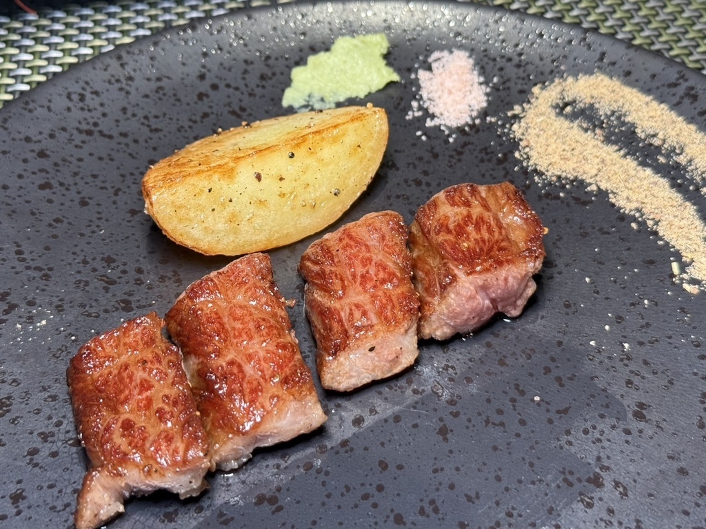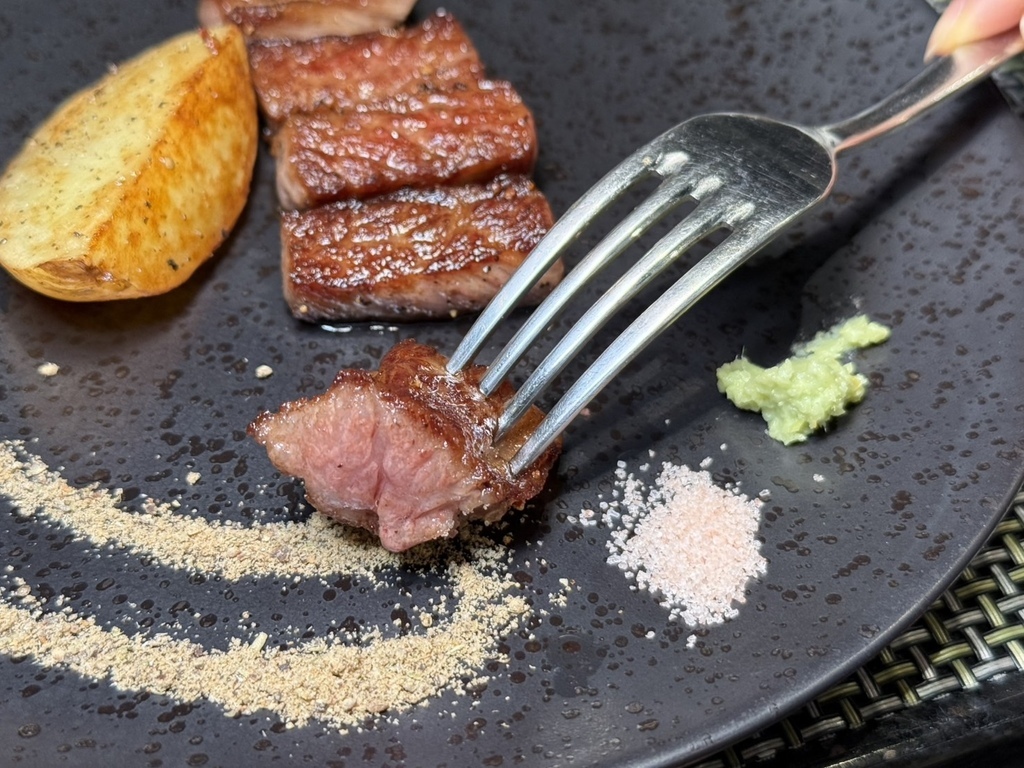 ▼細細品嚐,和牛外表微酥,