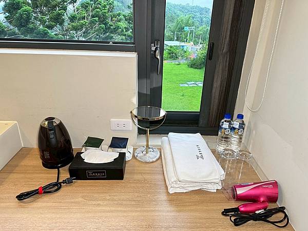 ▼洗手檯旁放有瓶裝水、