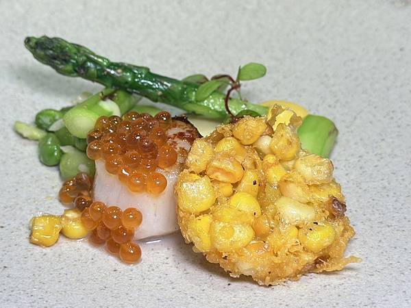 鐵板干貝、炸玉米餅