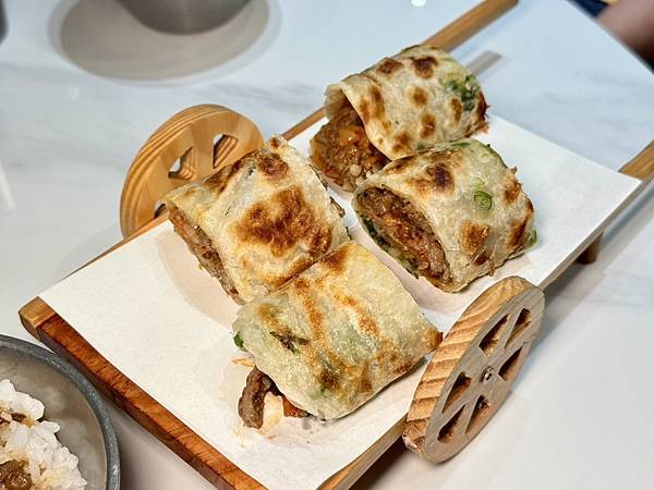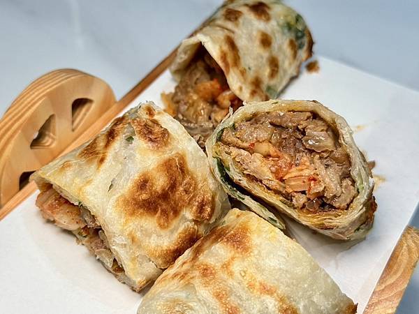 酥香的餅皮裡,包著鹹香微辣的泡菜牛肉,