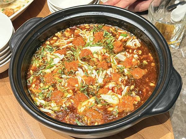 蟹黃與手剝蟹肉加入麻婆豆腐中,