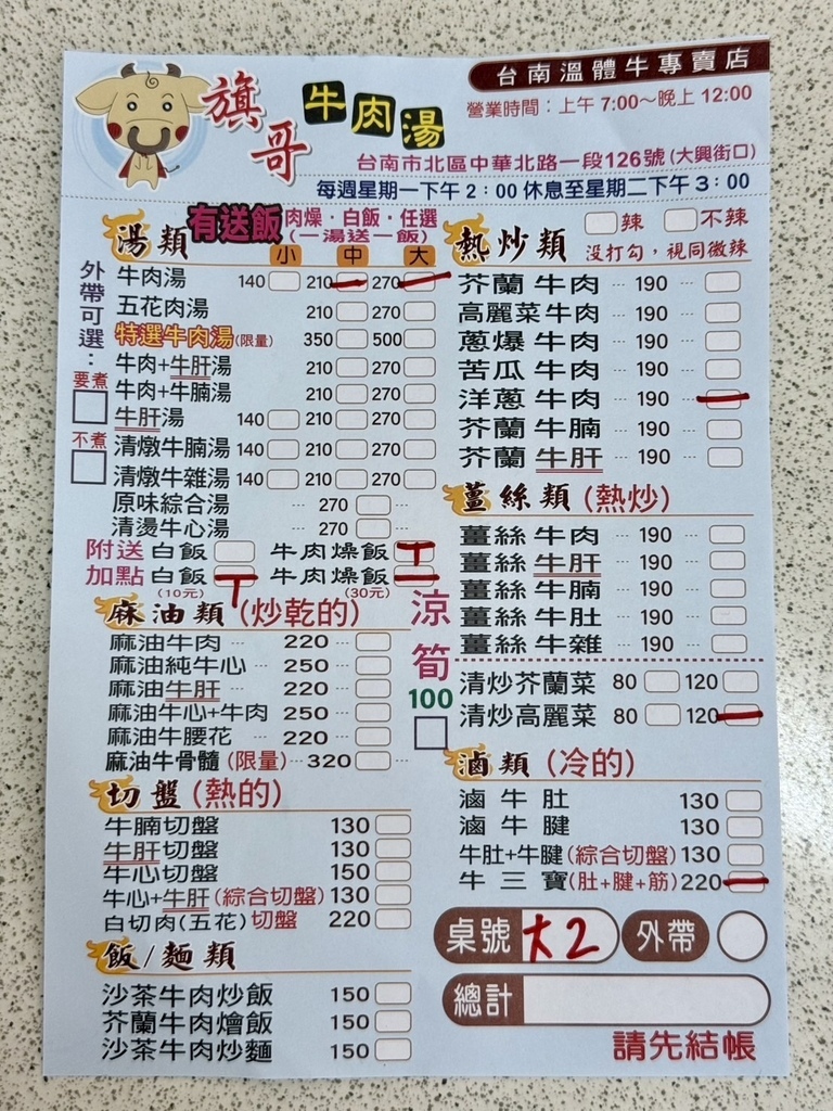 【旗哥牛肉湯 菜單】