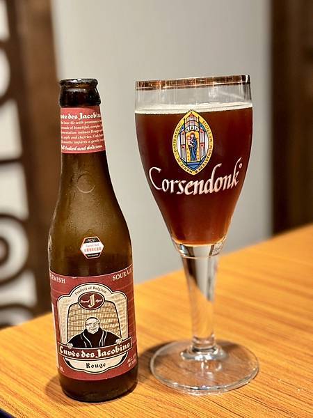 「比利時捷可繽酸啤酒」,喝起來帶有微微的麥香及醋味的酸香感,