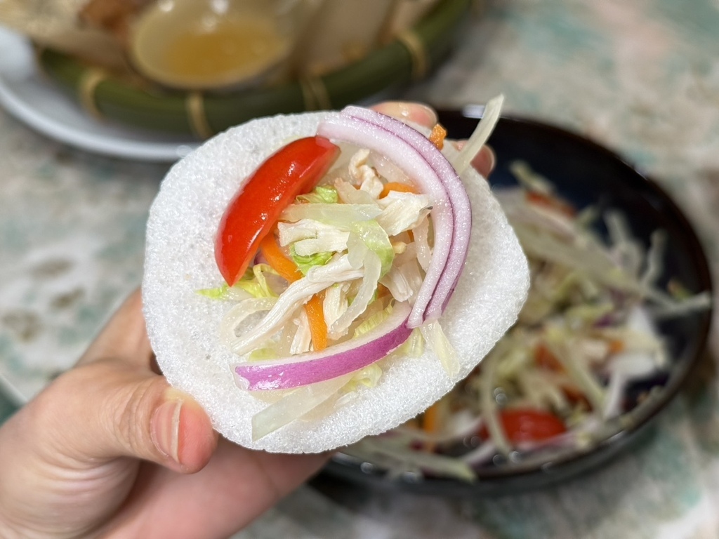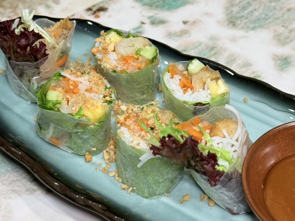 越南米紙,包入魚柳、鳳梨、蔬菜搭配特製花生醬,