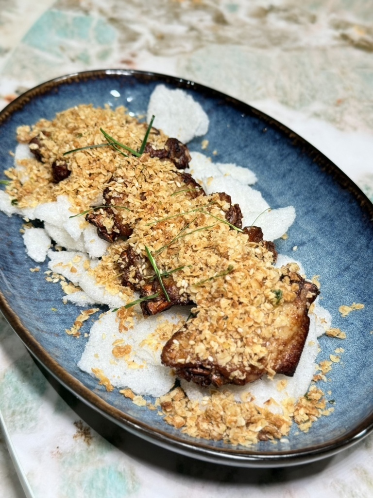 雞翅皮薄肉嫩又有味,搭配上層的炸燕麥,