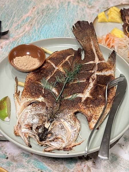 魚肉吃起來細緻,表皮帶點微辣及檸檬的清香。
