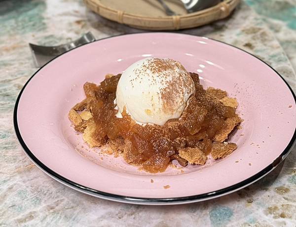 搭配巧克力醬及香草冰淇淋,有甜蜜的滋味。