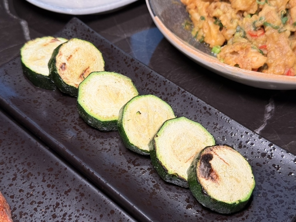 烤後的杏鮑菇吃起來水嫩帶點蒜香,