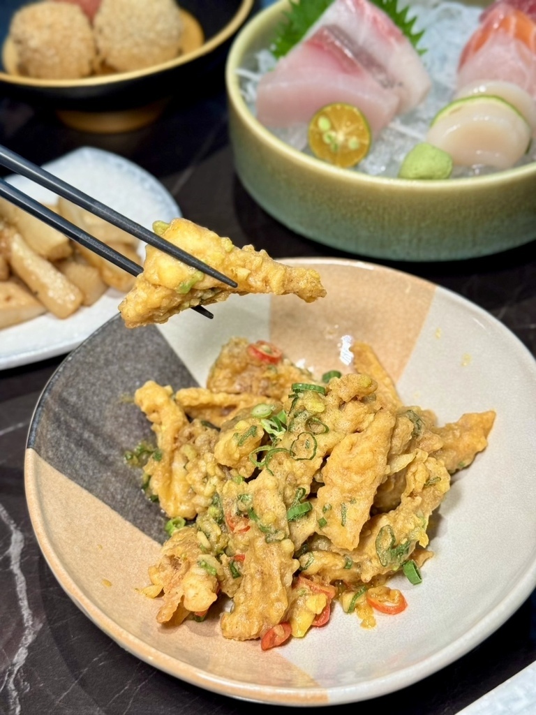 酥炸的雞軟骨,裏上鹹蛋流沙醬汁,