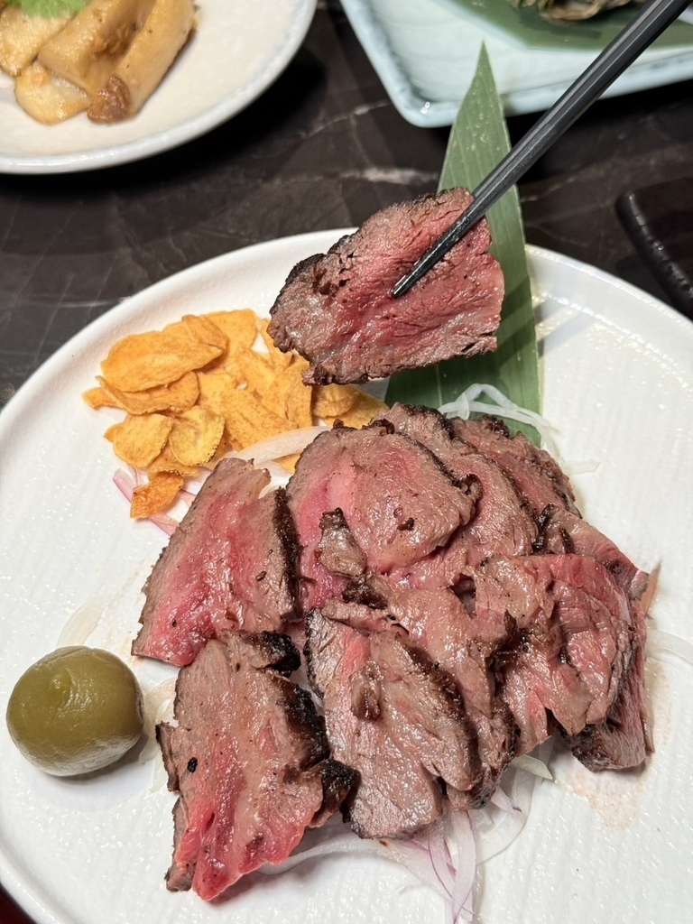 五分的熟度,吃起來柔嫩多汁且帶點炭香,