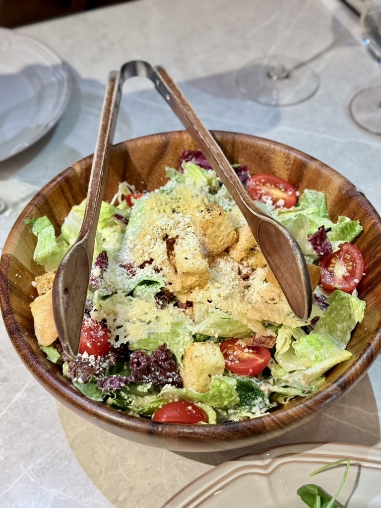 新鮮生菜搭配麵包丁、起司、凱薩醬製成的沙拉,