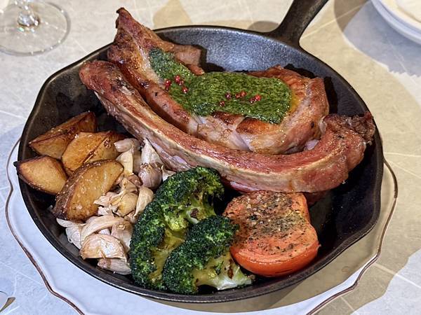 舒肥後的戰斧豬排,以Josper烤箱烤至外皮酥脆,