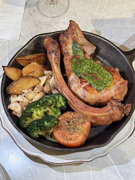 ▼煎烤戰斧豬排26盎司佐香料綠奶油風味