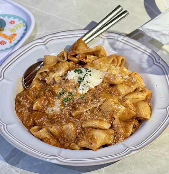 Q彈的大水管麵搭配店家自製的番茄肉醬,