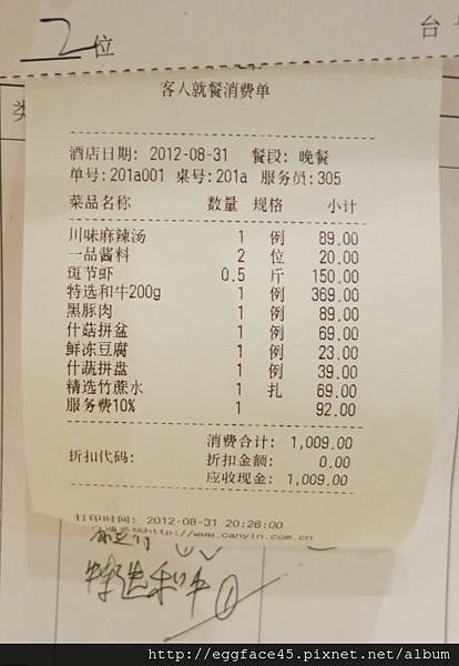 這是2人吃的價錢,上面金額是人民幣。看到帳單還是不免要對那和牛嘆氣,因為牠價格到位了,品質卻沒到位。