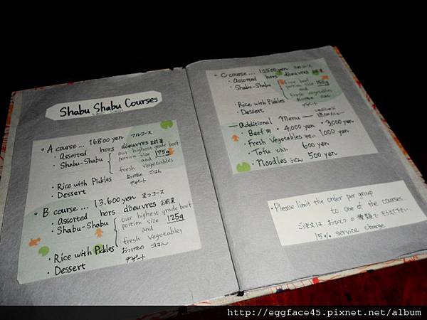 特地拍了一下涮涮鍋Shabu Shabu的價位給大家參考一下。價位比壽喜燒稍稍貴了一點。