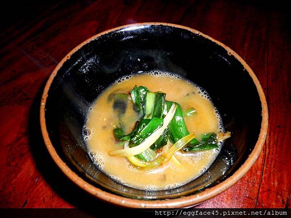 吃完第一片肉後,換蔥段下鍋,京都的壽喜鍋吃法就是這樣,一片肉,一點蔬菜,肉菜肉菜肉菜這樣輪流著吃,味覺上比較有變化。