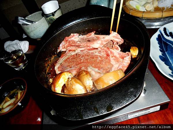 Sukiyaki也就是壽喜燒有分A和B套餐,A餐13600日幣,B餐10500日幣,差別只在於A餐是4片肉,比B餐多了一片。我們點了A餐。